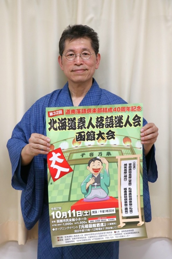 北海道素人落語迷人会、道楽40周年記念落語会実行委主催。道内のアマチュア落語家が集結。道南落語倶楽部からは落語の東家喜夢知さん、柱まっこりさん、鴎亭夢差志さん、講談の荒到夢形さん、手品のMr.トミーさんが出演。また、午前11時から正午ごろまで入場無料のオープニングイベント「元祖函館寄席」も開催。前売り券は1000円、当日券1500円。問い合わせは080・3266・8044(荒到夢形さん)