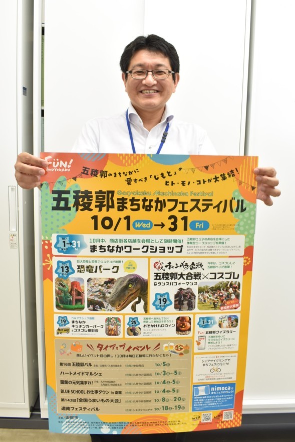 期間中は、店舗で商品やサービスを体験できる「まちなかワークショップ」やスタンプスポット15カ所を巡りクイズに挑戦する「五稜郭クイズラリー」を開催。また、13日は本町児童公園で巨大恐竜と散歩や撮影などができる「恐竜パーク」、19日はベルクラシック函館前の道路でチャンバラ合戦「五稜郭大合戦」やコスプレ&ダンスパフォーマンスを実施。このほか、さまざまなタイアップイベントも。事前予約制のイベントもあるため、詳細は公式ホームページで確認を。