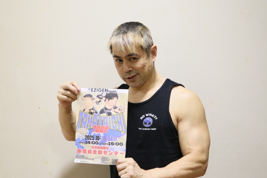 人気プロレスラーTAKAみちのく選手とタイチ選手が展開するタカタイチツアーの地方初開催。新日本プロレスから上村優也選手、SANADA選手らの参戦が発表されている。TAKAみちのく選手が代表を務めるプロレス団体「JTO」の男女選手や、フリー塚本竜馬選手のほか、函館の総合格闘技ジム「ベラトレオ」所属の武田光博選手がタッグマッチで特別参戦する。新日本からは大阪大会でも参戦した小島選手、若手で大人気の植村選手のほか、ヒール軍団ハウス・オブ・トーチャーのSANADA選手、DOUKI選手、金丸義信選手らの参戦も決定。小島選手はJTOのサンダー誠己とのシングルマッチ。メインイベントは「タカタイチ式スペシャル3本勝負」で、「タイチ&上村優也&TAKAみちのく&塚本竜馬対SANADA &DOUKI&金丸義信&ディック東郷」。ほか女子のシングル、タッグなど計5試合を予定する。チケットはスーパーシート1万円、リングサイド8000円、指定席6000円。JTOのオンラインショップのほか、ローソンチケット(ウェブ、店頭で。Lコード=11741)で取り扱い中。このほか、当日券のみでU-18指定席2000円を(要身分証)設定している。