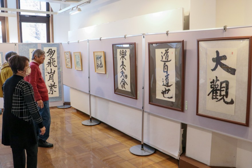 園児から高齢者までの幅広い世代が思い思いにしたためた作品が並ぶ。入場無料。午前10時~午後9時(最終日は同4時まで)。