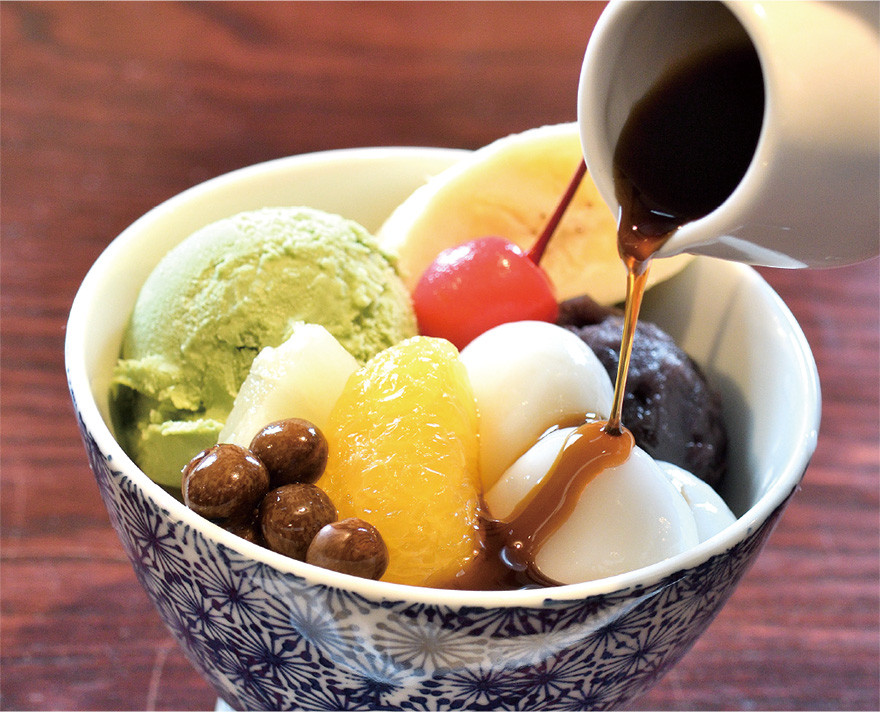 大正期の柱や梁がそのままに残る開放的な吹き抜けに、函館山の景色が見える蔵特有の小さな窓…。時間が止まっているような、心落ち着く静かな空間で味わえるのは、入村里奈枝店長が一つひとつ手を掛けて用意するスイーツや軽食。和の器を彩る「白玉抹茶クリームあんみつ」は、粒とこし両方の良さが出るよう炊いた豆の風味豊かなあんがたっぷり。注文を受けてから茹でる白玉は、やわらかく口当たり滑らかで、自家製の黒蜜を掛けて味わえば、あんや抹茶アイスと織りなす甘みのハーモニーが口いっぱいに広がる。「ほうじ茶パフェ」は、生クリームやあんの下に、ほうじ茶アイスや手作りの黒糖ゼリーが折り重なり、味の移り変わりも楽しく、のんびりと甘いひとときに浸らせてくれる。