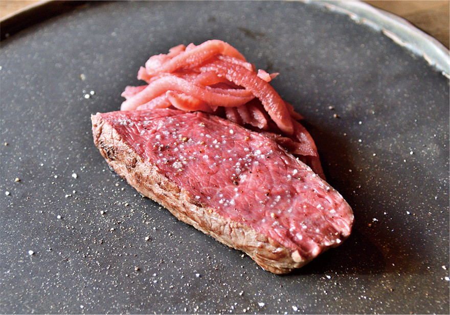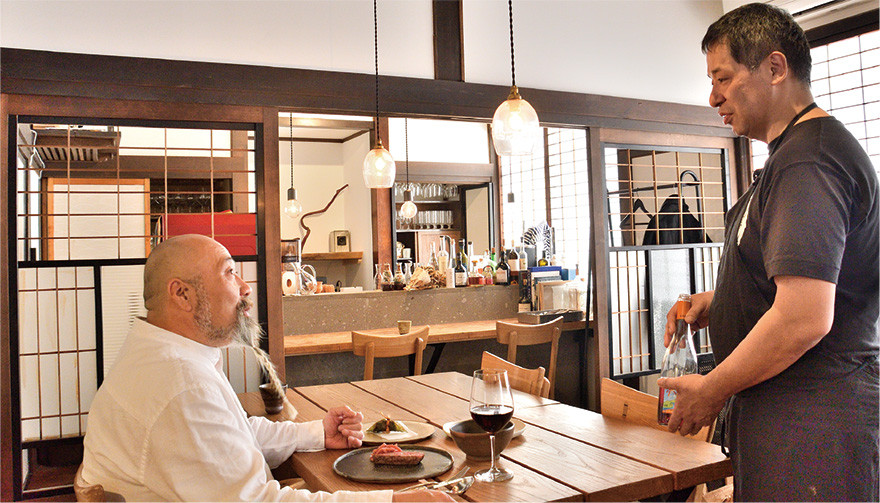 「コース料理を出す店にある少し敷居が高いイメージとは違い、ここには一皿一皿をゆっくりと堪能できる自然体な料理と時間がある」と話す水野さん。四季折々の料理を楽しみに20年以上この店に通い、初めて見る料理や想像のつかない味との出合いに、来るたび感動させられる。シチリア島発祥の筒状の揚げ菓子をモチーフに、空知管内滝川市産の鴨肉を南茅部地区産のコンブで巻いてパリッと揚げた「鴨と昆布のカンノーリ」、真コンブダシのスープに浸るもっちりとした生地からクリーミーな枝豆ピューレがあふれ出す「ラビオリ」、山の中で木の実や植物を食べて育った自然放牧野生牛を塩コショウだけでしっとりと焼き上げる「様似町駒谷牧場ジビーフ」、庭で採れた柿を使った冷たいデザート「干し柿とホワイトチョコのセミフレッド」…。「一皿にどれだけ手間が掛かっていても、当たり前のこととして振る舞う佐藤シェフの姿勢がかっこよく、人としても尊敬している。ここで味わえるのはイタリアンというよりも〝コルツ〟という料理だと思う」。分野は違っても、地域に根差して食を追及する者として、全幅の信頼を寄せている。