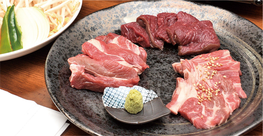 「大門ひつじ亭」は、自慢の羊肉を最適な焼き加減で味わってもらおうと、すべての肉をスタッフが焼いて提供するジンギスカン専門店。本店、駅前店に続く姉妹店としてオープンした「松風店」は、〝ジンギスカンと四季の肴〟をテーマに、店内で手切りする生ラムをはじめ、酒が進む独自メニューを展開。かつて高級リゾートホテルのコックとしてジビエ料理を手掛けていた奥山遼耶オーナーは、「臭い、硬いという鹿肉のイメージを覆したい」と、今年4月、森町に開業したジビエ工房「マノワラボ」から新鮮な鹿肉を一頭買い。肉々しい味わいの肩ロースからヘルシーなロース、タン、ハツなどの希少部位まで、焼肉用の地場産鹿肉を目玉に、ジビエ目当てに訪れるファンを増やしてきた。ジンギスカン鍋で鹿肉と羊肉を焼き比べ、お気に入りの部位を見つけたり、鹿やいのししのソーセージをつまみにバー感覚でくつろいだり…。道南だからこそ味わえる絶品グルメで、観光客はもちろん、地元の人の心もしっかりと掴んでいる。