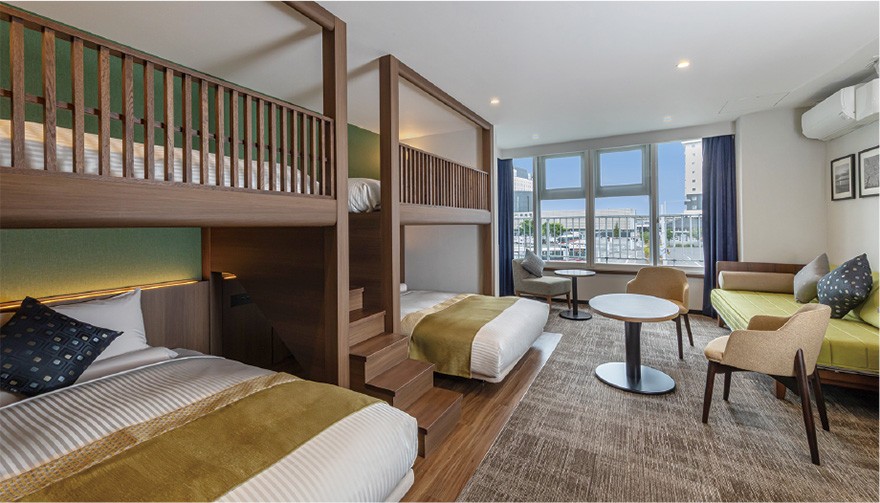 JR函館駅の正面に建つ「ホテルマイステイズ函館駅前」は、今年7月に「フレックステイイン函館駅前」からリブランド。大型2段ベッドで大人7人まで泊まれる客室などの6室を増設し、グループの函館国際ホテル総料理長の木村史能氏が監修する朝食ビュッフェレストランは、窓辺にカウンター席などを増やし、駅前ロータリーを一望する空間に。仕事の出張利用から友人同士や親子3世代でのレジャー利用まで、幅広いニーズをかなえるホテルに生まれ変わった。