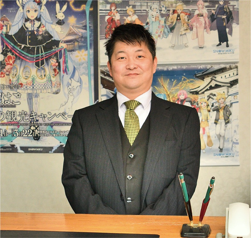 マネージャーの佐藤大樹さんは函館出身。高校卒業後に2年間、陸上自衛隊員として任務にあたり、その後、ホテル業界へと進んだ。途中、業界から離れ、コールセンター、電気工事会社勤務を経て、2021年に「ホテルかもめグループ」に入社。「異業種に携わったことがプラスになった。培った経験を糧に、今の業務に生かせています」と振り返る。現在はホテルの顔でもあるフロント業が中心。多忙時は食事の準備や片付け、客室清掃のヘルプにも入る。また、グループ全体の仕事にも意欲的に取り組み、スタッフが円滑に働けるよう、シフト管理をはじめ、求人や面接も担当、時代に合わせた業務改革の提言も行う。指針としているのは、利用客との程よい距離感。セルフサービスが基本のビジネスホテルで、利用客が自分のペースで過ごせるように心を配る。「とりたてて特別なことはしませんが、決められた枠の中でお客様に寄り添い、質を落とさず、かつ過剰にならないサービスを提供したい」と佐藤さん。飾らない真面目な姿勢こそが、ホテルの“快適さ”を支えている。