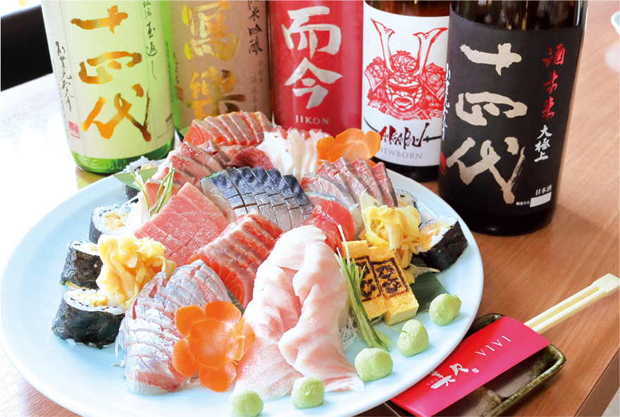 来店客のほとんどが注文するという「刺し盛り」(2人前~・2,178円~)は、旬の魚介をふんだんに盛り込んだ同店イチオシのメニュー。日本酒は定番から季節限定酒まで幅広く取り揃え、日本酒通に大人気の「十四代」は本店・二号店のどちらにも常備し、いつでも味わえるのが嬉しい。また「冬の日本酒3種飲み比べ」(1,078円)は、この時期ならではの日本酒が堪能できる。