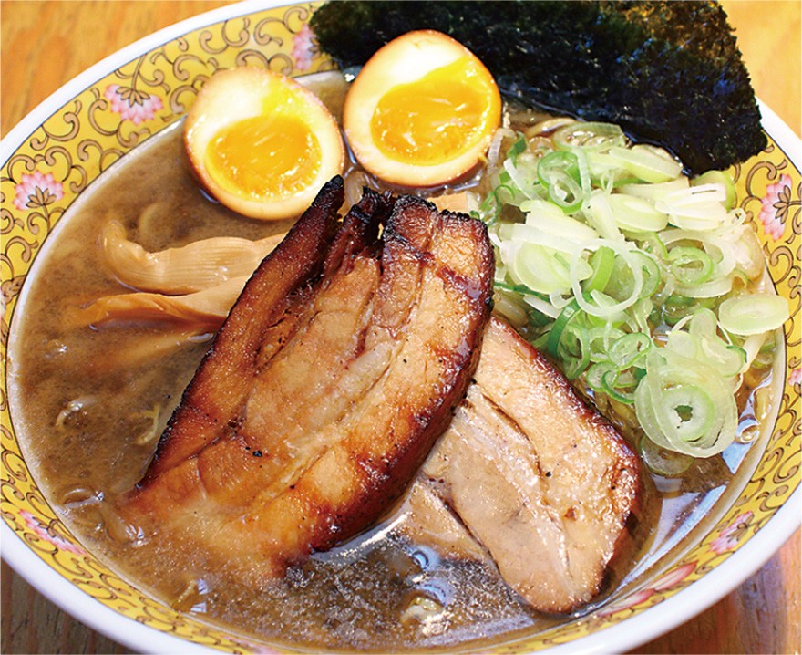 これからの季節に食べたくなると評判の「炙辛みそ」(1,080円)は、豚骨と鶏ガラをベースに長時間煮込み旨味を抽出したスープに数種類の味噌とコチュジャンをブレンドし、程よい辛さに仕上げた発売当初からの味を守り続けている人気の一杯。具材はモヤシ、キャベツ、玉ネギなどの炒め野菜のほか、とろける食感の肉厚炙りチャーシューも入り食べ応え充分。長年愛されている味を味わってほしい。